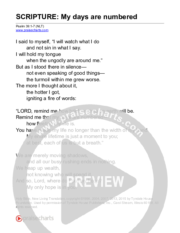 My Days Are Numbered Psalm 39 Sheet Music Pdf Scripture Praisecharts